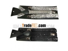 Men's Unisex Clip-on Braces Elastic Y-back Suspender Sequin"Black"